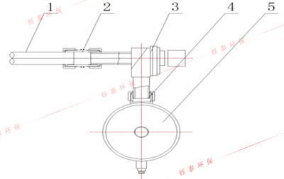 | 1、噴吹管 | 2、橡膠連接管 | 3、電磁脈沖閥 | 4、氣包連接管 | 5、氣包 |